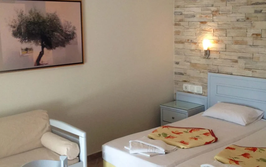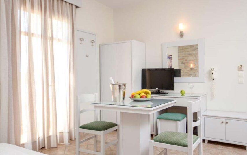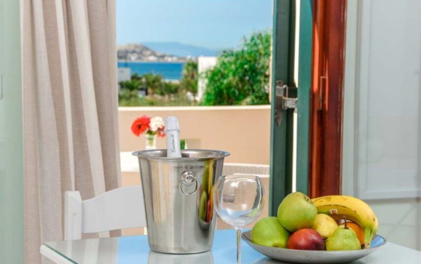 The Superior Double Room has a floor area of 20 sq.m and features a double bed with a comfortable mattress and a spacious balcony with a fantastic sea view.